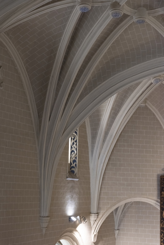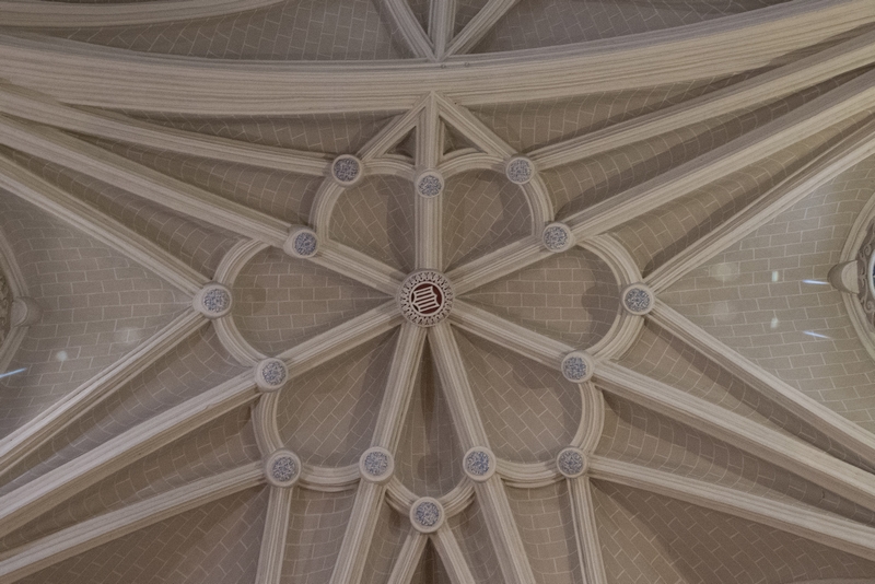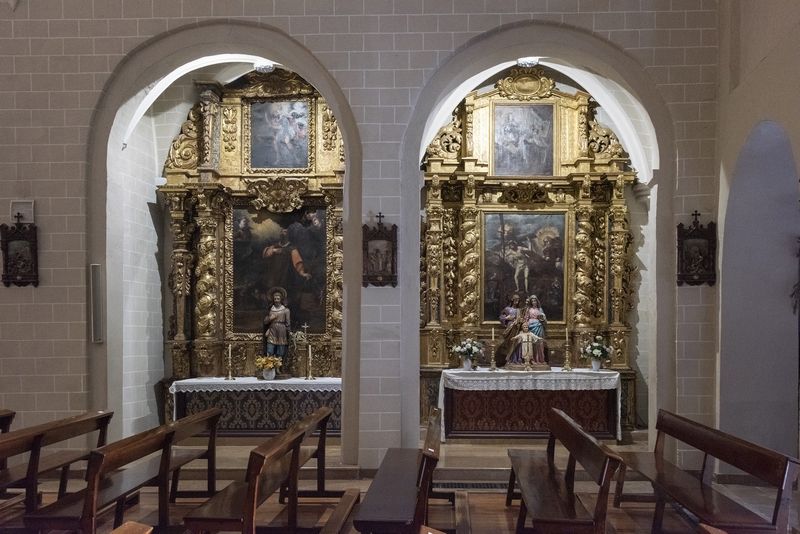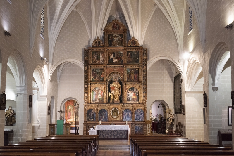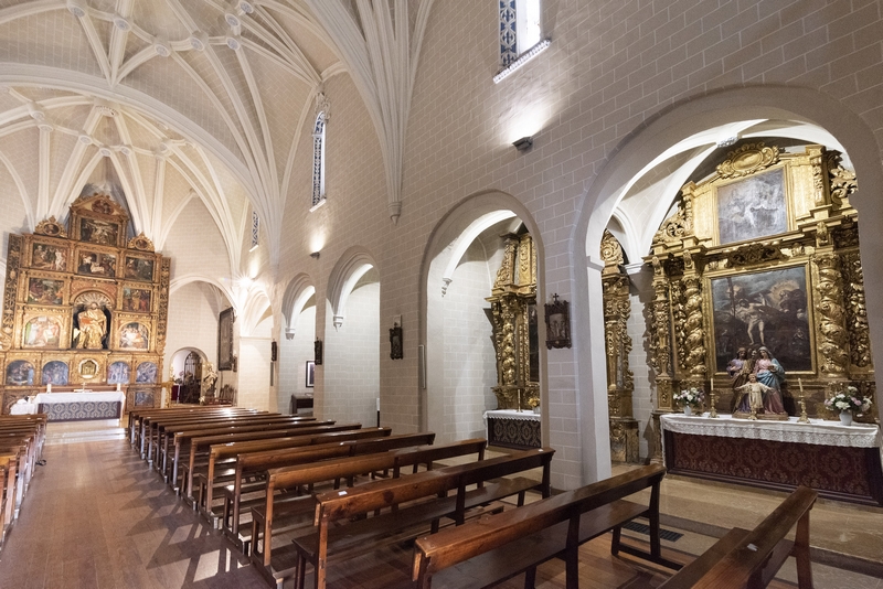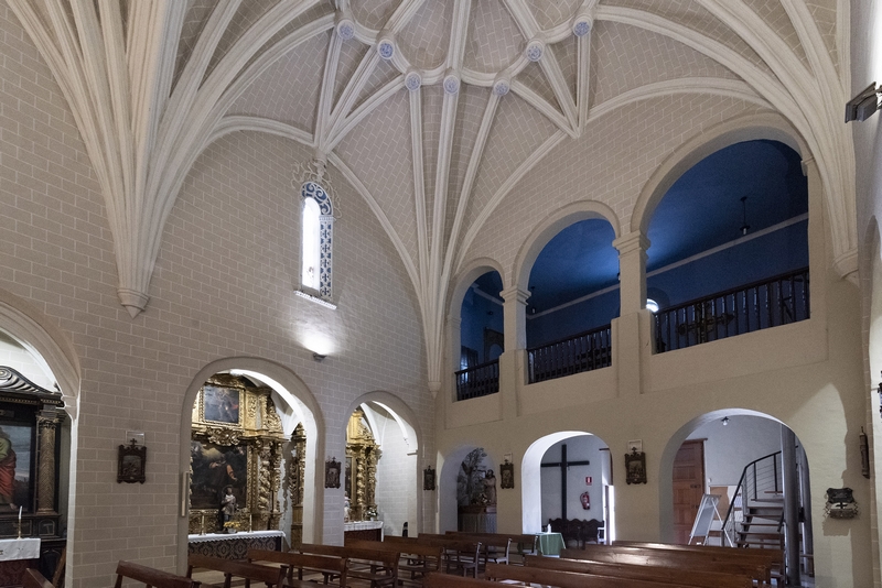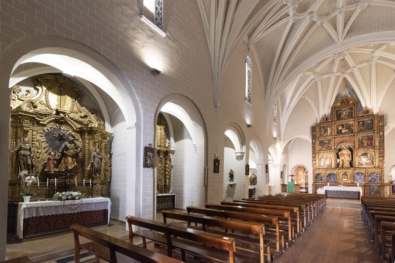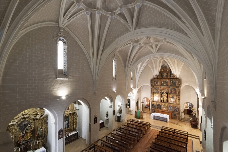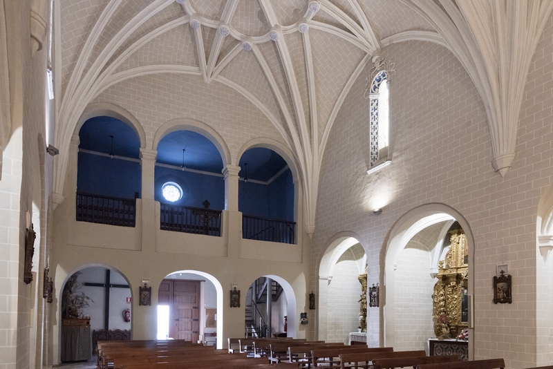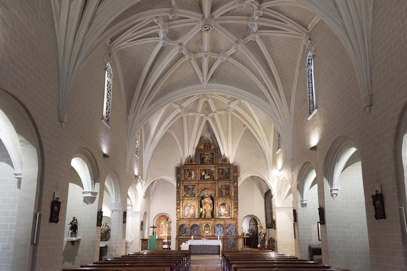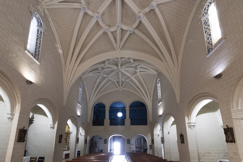 La nave y la cabecera, que pasa a poligonal en altura por medio de trompas de ángulo resueltas por medio de nervios de crucería, se cubrieron con bóvedas de crucería estrellada mientras las capillas laterales se cerraron con bóvedas de crucería sencilla.