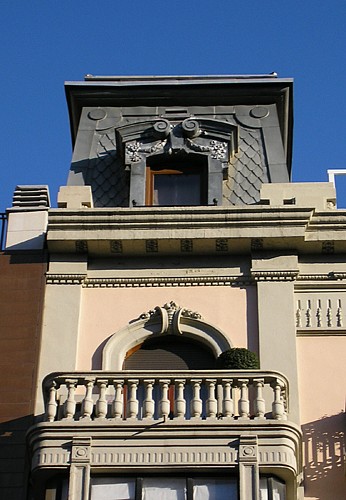 Sobre la cornisa se destacan los dos torreones avanzados de la planta ático, dispuestos a modo de prolongación de los miradores e inspirados en la arquitectura francesa.