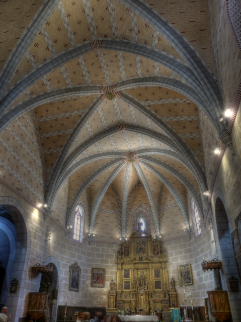 Su cabecera está constituida por un ábside poligonal de siete lados, sin contrafuertes exteriores, aunque ha sido reforzado el grosor del muro en esta parte adosándole un segundo muro original. Se cubre con bóveda de crucería radial que se une en una clave cilíndrica. Dichos nervios tienen sección de triple bocel y apoyan en ménsulas, a cuya altura una imposta recorre toda la iglesia por encima de las capillas laterales. Tres vanos iluminan el interior siendo más rico el correspondiente al paño central cuyo arco apuntado va doblado, mientras que los otros dos abren en arco de medio punto. La decoración pintada simula el aparejo de ladrillo al igual que en la nave.