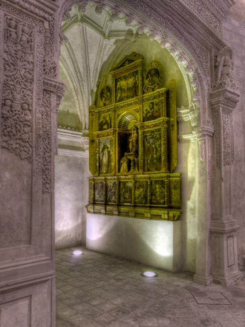 En el tramo de los pies encontramos un coro alto decorado por un alfarje de madera de calidad excepcional.