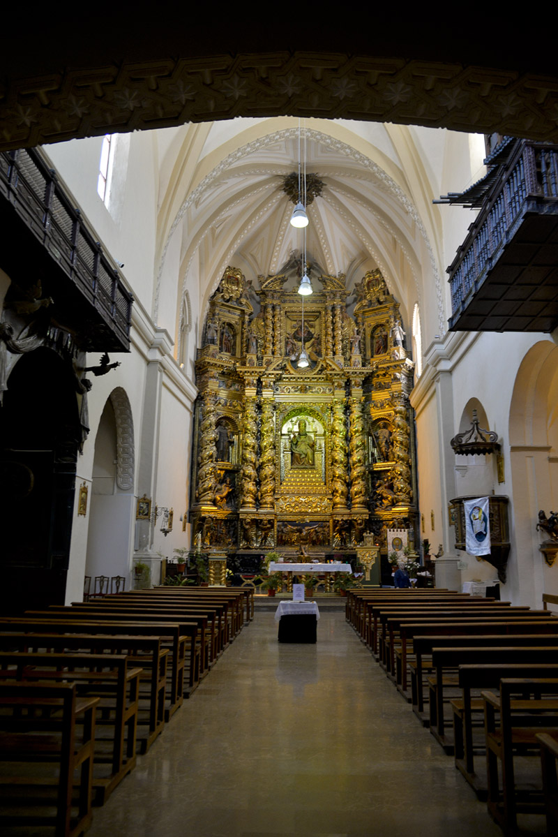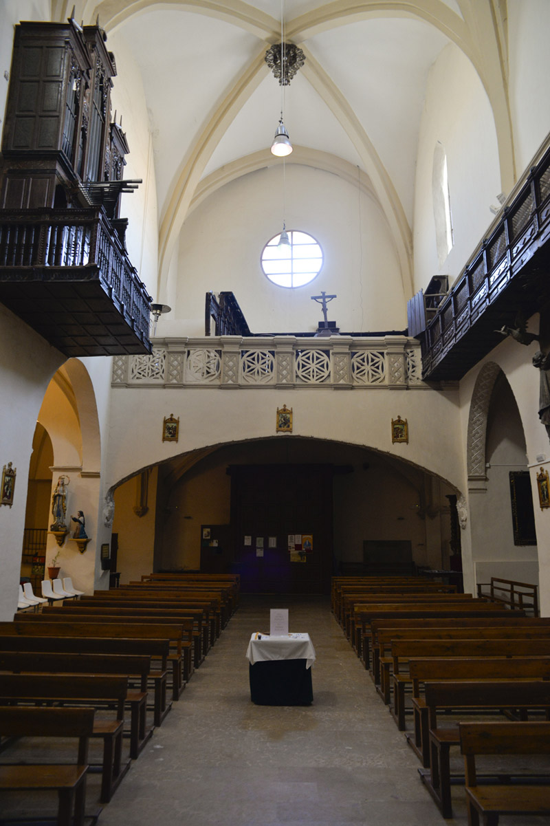 La nave única consta de dos tramos, de planta cuadrada, cubiertos con bóveda de crucería sencilla de arcos diagonales. Todos los nervios se hallan enmascarados a causa de la reforma llevada a cabo en el siglo XVII, decorados con yeserías talladas con motivos de lazo de pervivencia mudéjar. A estos dos tramos corresponden las capillas laterales a cada lado de los mismos, cubiertas con bóveda de crucería sencilla, excepto tres, que han sido modificadas con posterioridad. Esta proporción de dos capillas laterales por tramo de planta cuadrada en la nave, aparece a partir del siglo XV.