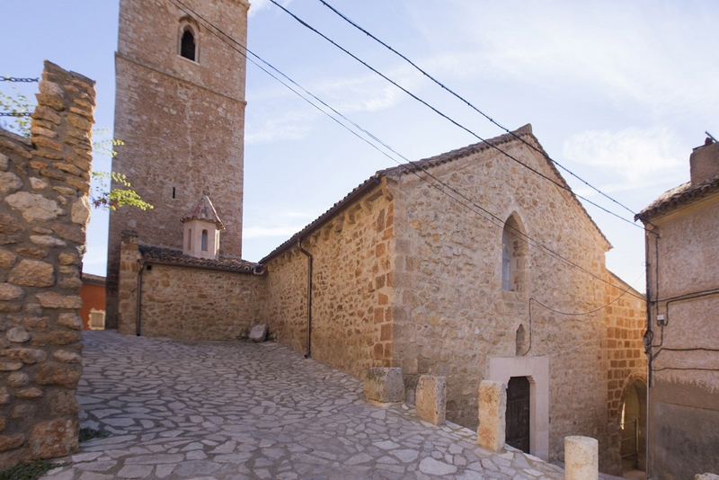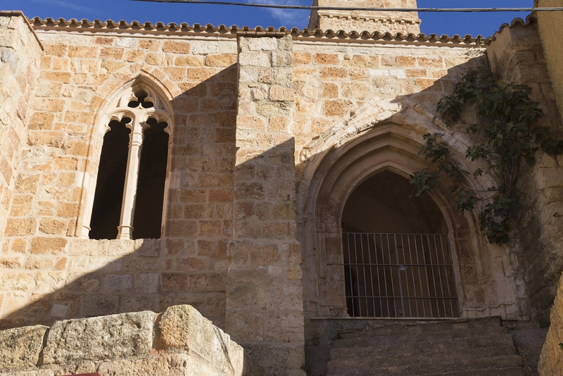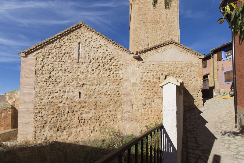 La cabecera de la iglesia se remata con una aspillera, que encontramos también en la capilla lateral hacia el lado del evangelio. Junto al presbiterio se encuentra la antigua sacristía. Es una sala cuadrangular cubierta con cañón apuntado en el mismo sentido que la nave de la iglesia, con arco fajón intermedio que apea sobre ménsulas. En el hastial se abre otra portada, renacentista, muy sencilla, con vano adintelado sobre ménsulas, con hornacina y ventanal superior apuntado.