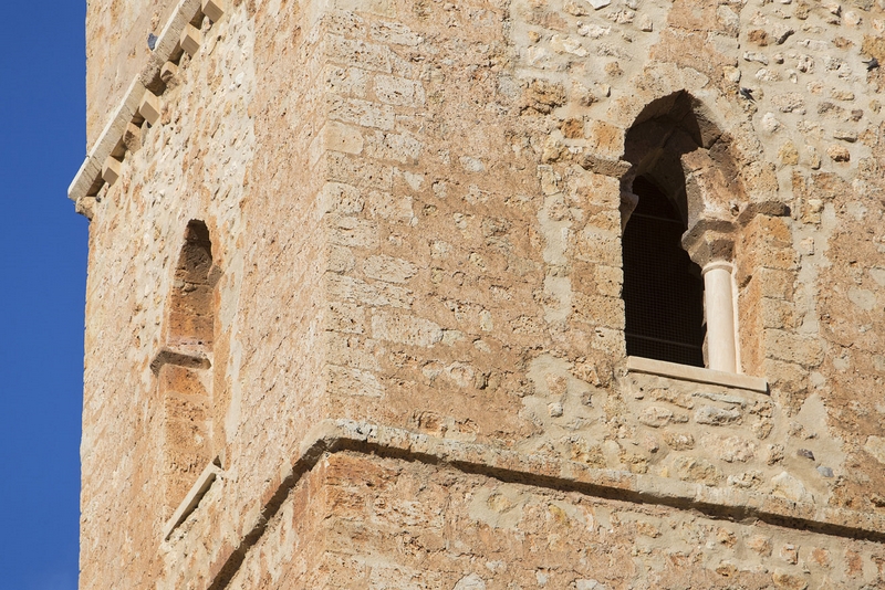 El lado norte conserva la cornisa románica, con sus canes, de la primera fase del edificio.