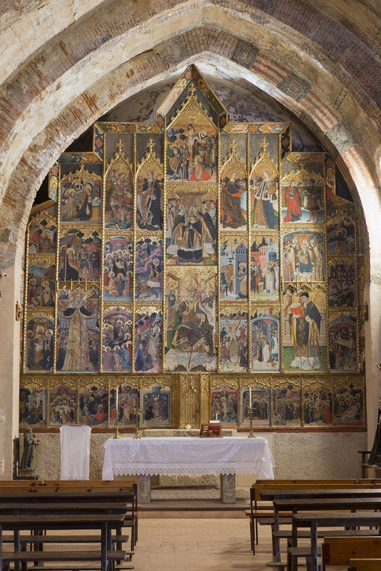 Consta de 37 tablas, distribuidas en la predela y el cuerpo del mismo. Conserva el guardapolvos, pintado con ángeles y escudos, entre los que destaca el del arzobispo don Dalmau de Mur; se conserva bastante bien la mazonería, sobre todo los pilares de las entrecalles y los arquetes de las tablas del banco y de las cimeras de las calles.