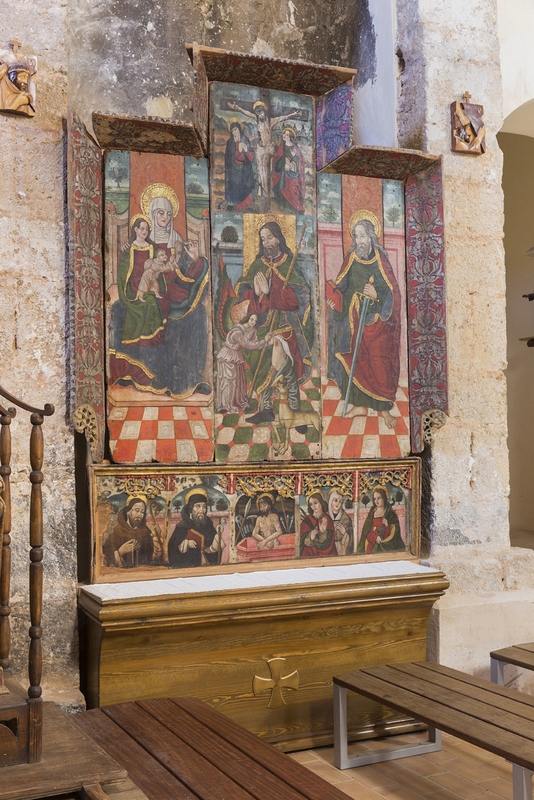 En el retablo hay otras tablas en las que se representa a San Miguel, Santa Catalina, Santa Lucía, Santa Bárbara, San Fabián, San Sebastián, el profeta David y el Calvario.