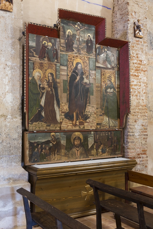 El primero es el retablo de San Juan Bautista de la primera mitad del siglo XVI. Consta de predela con tres tablas, cuerpo con otras tres y ático. Tiene tres escenas: San Juan Bautista predicando, la Faz de Cristo y la Degollación del santo.
