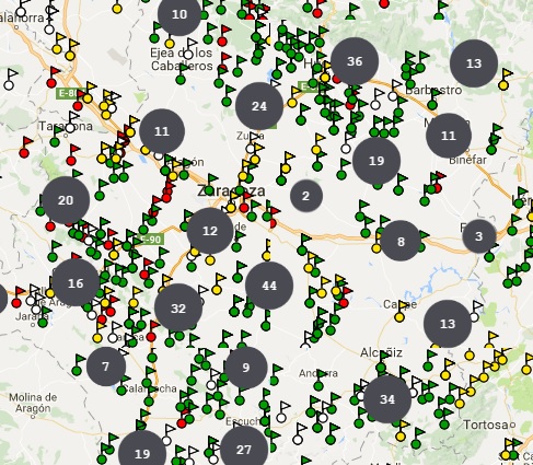 Permite la localización geográfica de las fosas o lugares de enterramiento en el territorio español de las que se dispone información, representadas con símbolos de diferentes colores según la actuación realizada sobre cada una de ellas