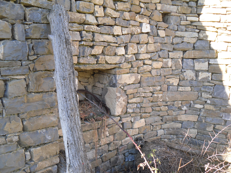 Construido con mampostería de piedra del terreno asentada sobre un mortero de tierra.