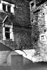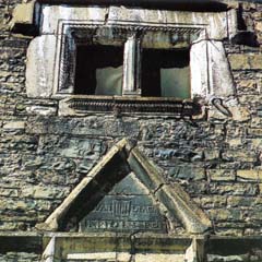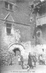 La portada, hoy mutilada, era de medio punto con tornalluvias. La planta noble tiene una ventana de corte francés, con parteluz horizontal, rematada por frontón. Sobre ella hay otra geminada, decorada con sogueados. El último piso presenta pequeños vanos y aspilleras.