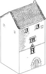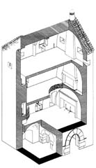 En cada piso hay una sala rectangular de reducidas dimensiones. La planta baja, con cubierta plana, se subdivide en un zaguán y un pequeño recinto al que se accede por arco de medio punto. las superiores se cubren con bóvedas. En la sala de la primera planta hay un hogar de tipo provenzal.