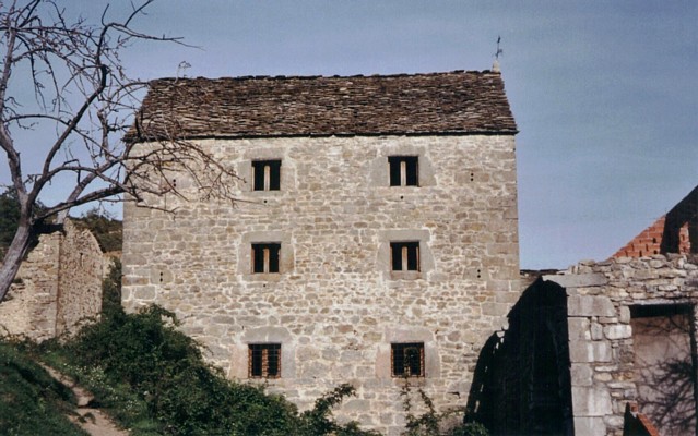 Consta de tres bloques adosados y escalonados por la pendiente, teniendo cada uno de ellos dos plantas y desván.
