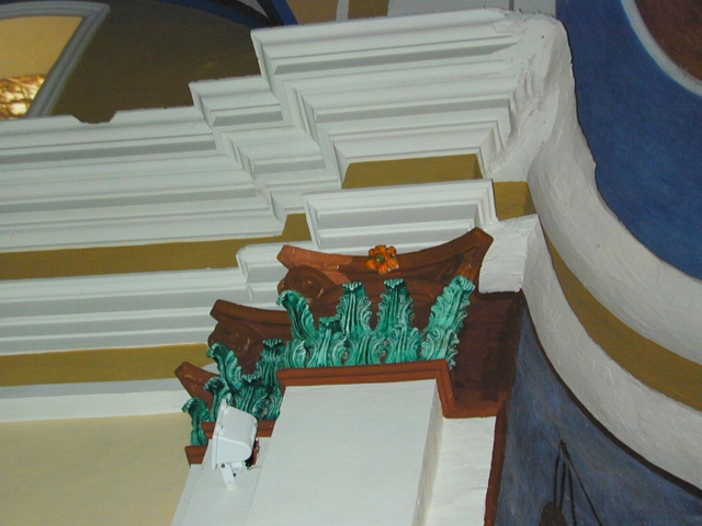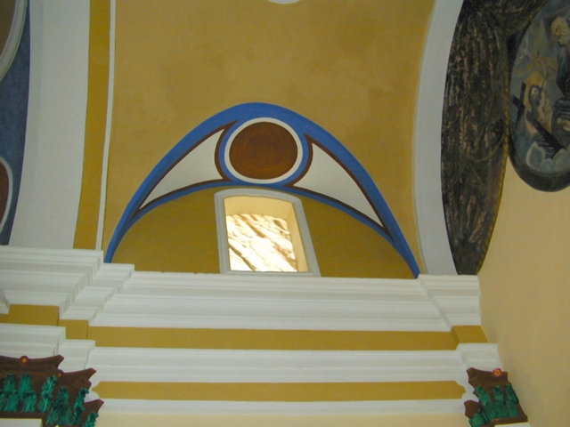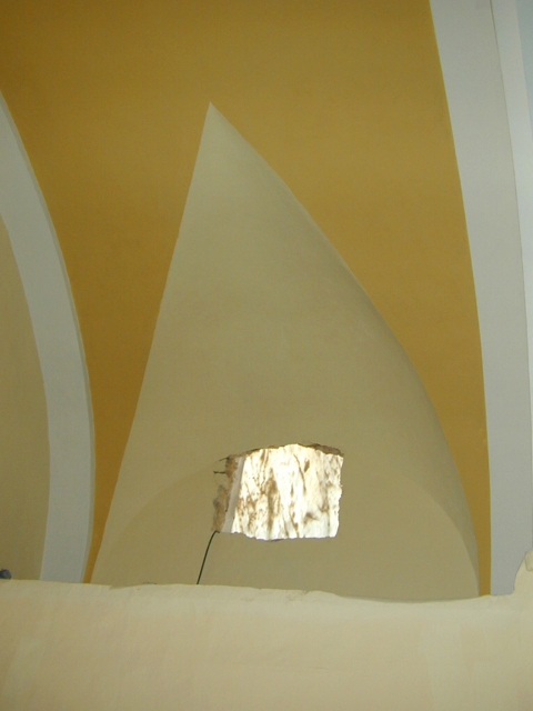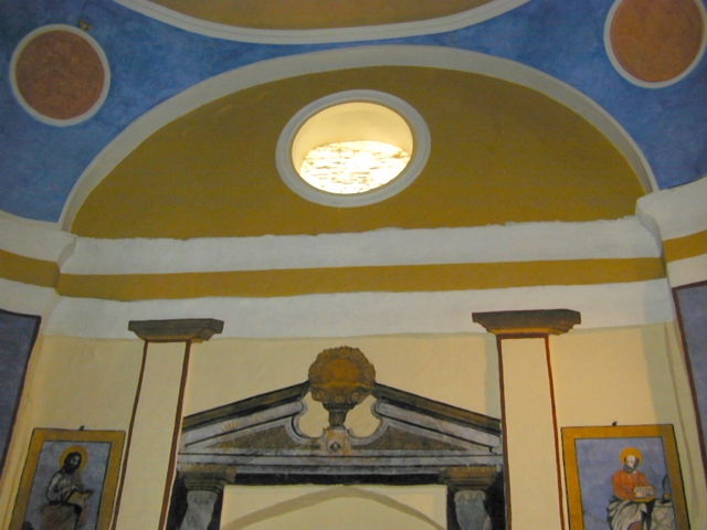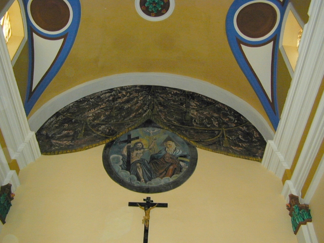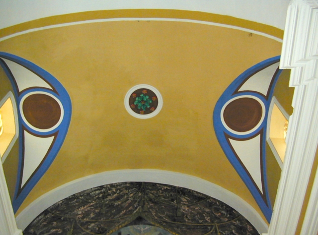 Realización de las pinturas en la superficie achaflanada sobre las hornacinas y en ambos lados de los altares laterales.