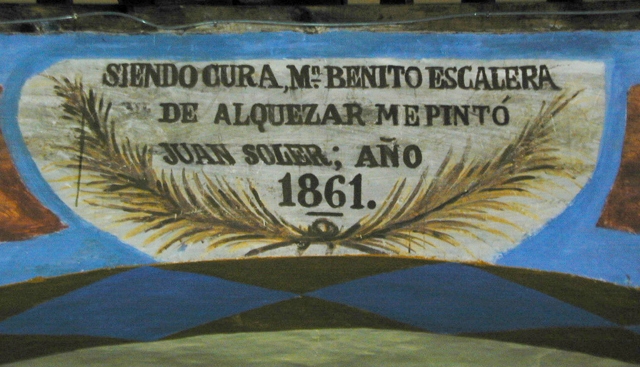 En el tramo de los pies de la iglesia se encuentra el coro alto, de obra, sobre un gran arco rebajado y cubierto con bóveda de lunetos. En el frente del coro hay pintada en rojo la siguiente inscripción: SIENDO CURA Mn BENITO ESCALERA DE ALQUEZAR ME PINTO JUAN SOLER / AÑO 1861.La sacristía, a la que se accede a través de puerta adintelada, se encuentra en el costado sur del presbiterio. Tiene planta rectangular, cubierta por dos tramos de bóveda de lunetos.