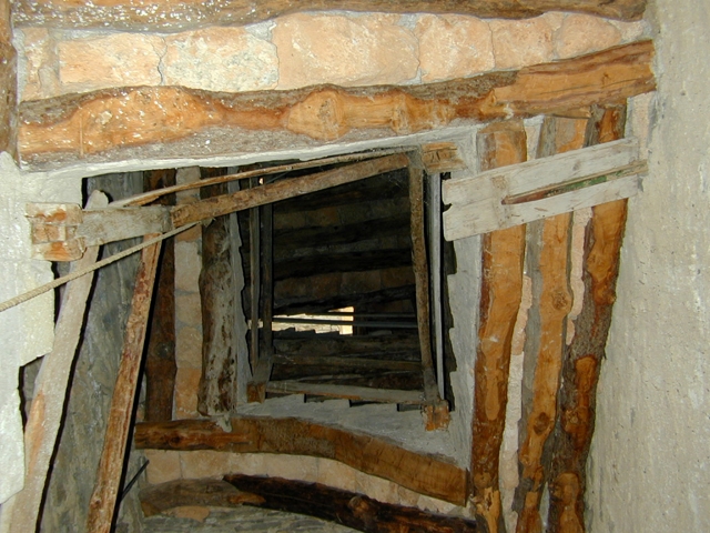 La entrada, ubicada a los pies, abre a la plaza del pueblo.