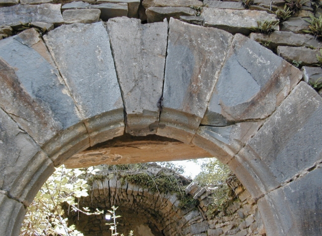 La puerta es en arco de medio punto al exterior, con dovelas bien trabajadas y biseladas al intradós, y adintelada al interior mediante una pieza monolítica.