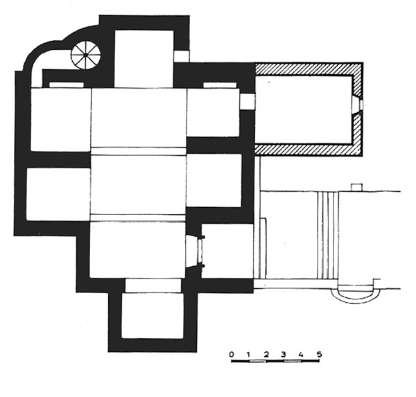 Obra de mampostería y piedra sillar enlucida en algunas partes.