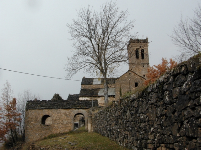 Edificio aislado al norte del pueblo, en la parte alta, con la casa abadía adosada a los pies. Forma un recinto cerrado por el cementerio al este y hacia el sur por el esconjuradero.
