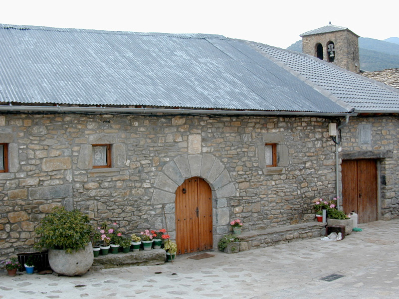 Tiene adosados por uno de sus extremos los pajares y el corral.