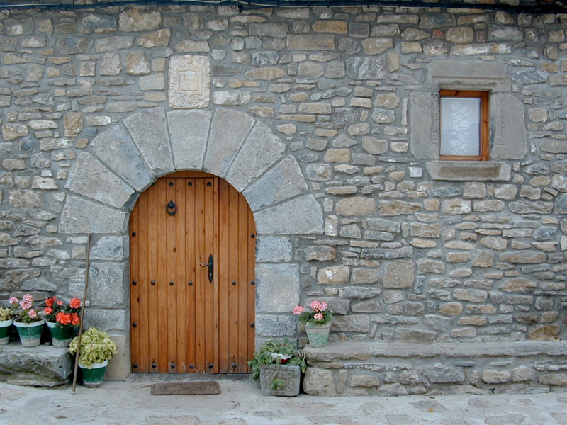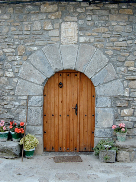 Presenta numerosos elementos de interés: La puerta de acceso se sitúa en la parte central de la fachada. Es en arco de medio punto de largas y gruesas dovelas, sobre jambas de piedra compuestas por diversas piezas desiguales. Sobre la clave se sitúa el escudo de la familia Villacampa que, según documentación que consta en posesión de los propietarios, fue colocado en el siglo XVII en este mismo lugar, cuando vino a vivir aquí un infanzón procedente de casa Villacampa de Planillo.