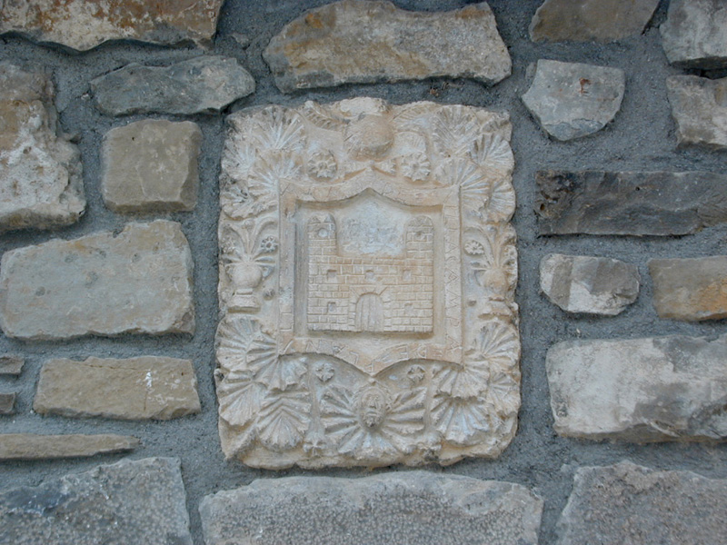 El escudo es de labra muy plana, con timbre de hidalguía y lambrequines vegetales y de rocalla según un modelo muy repetido en el valle de Fiscal, a los que se añaden sendos jarrones con flores en cada lado del escudo. Este no presenta particiones y muestra su cuerpo totalmente ocupado por una fortaleza, rodada por leyenda incisa: "ARMAS DE LOS VILLACAMPA DE PLANILLO".
