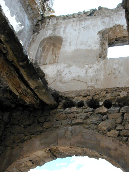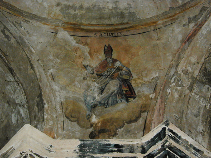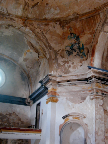Los muros interiores de la iglesia están articulados con pilastras sobre plintos, con capiteles jónicos que sostienen una cornisa a modo de entablamento, corrida y muy volada. En los chaflanes del crucero hay cuatro hornacinas – altar en arco de medio punto. Poseía decoración pictórica, consistente en las figuras de los cuatro padres de la Iglesia en las pechinas, en estilo ingenuo y popular. En el centro de la cúpula había una leyenda: “SE PINTÓ CON LA AYUDA DE LOS FELIGRESES SIENDO Ror. Dn. º FALCETO AÑO 1851”.