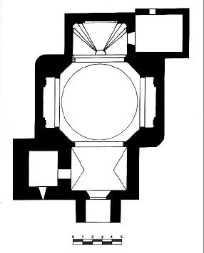 En general, este edificio refleja los ecos de la tradición italiana en las obras del arquitecto Agustín Sanz, patentes en la tendencia a prolongar ininterrumpidamente la planta centralizada en los muros que adquieren un dinamismo ascensional mediante el juego de las cuatro hornacinas de los chaflanes hasta enlazar con la oquedad de la cúpula. A este efecto contribuye también la quebrada y volada cornisa, con la influencia neoclásica de sus seco perfil geométrico y las pilastras con capiteles jónicos.
