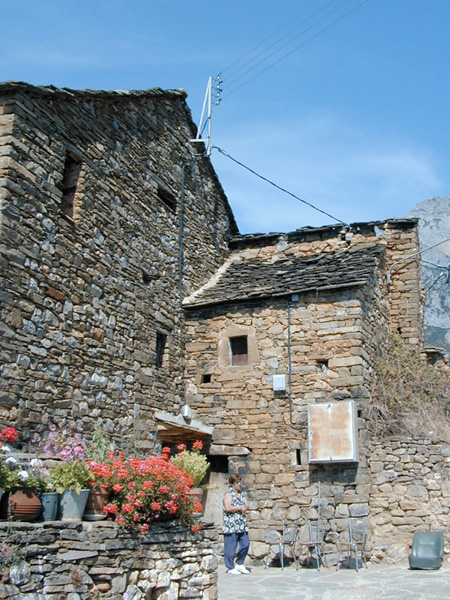 Más que por su interés arquitectónico intrínseco, se ha incluido esta casa por ser la única tradicional de esta aldea. Es una construcción de tres plantas, de losas de arenisca cubierta con losa a dos aguas, que tiene por el costado O un añadido muy restuarado y cubierto a tres aguas, y por el lado E un cuerpo dispuesto en escuadra en el que se sitúa la fachada principal. El elemento más destacado es una ventana en este cuerpo, adintelada y con jambas monolíticas, en las que aparecen sendos grabados incisos indescifrables, consistentes en formas almendradas horizontales cruzdas por líneas verticales. El resto de los vanos son adintelados con viga de madera, siendo muchos de ellos de apertura relativamente reciente (balcones, etc.).