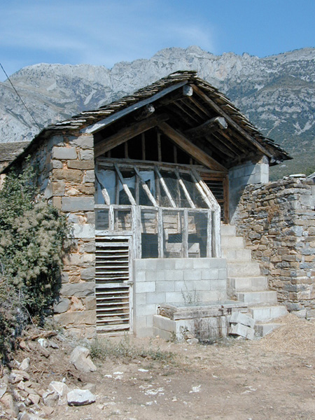 Edificio exento, con un pequeño corral adosado a su costado S y un pajar muy restaurado en sus proximidades.