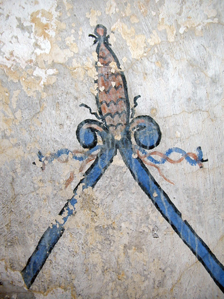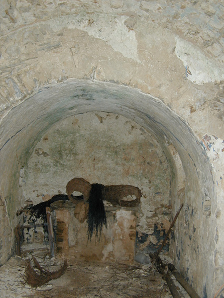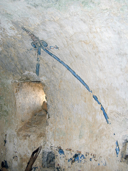 El interior está encalado y en el muro sur hay un luneto pintado en la parte inferior de la bóveda.