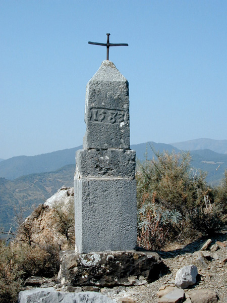 Sobre dos gradas cuadradas de sillería sin ornamentar, de dimensiones decrecientes, se eleva un fuste monolítico cuadrangular con remate troncopiramidal que culmina con una cruz griega metálica.