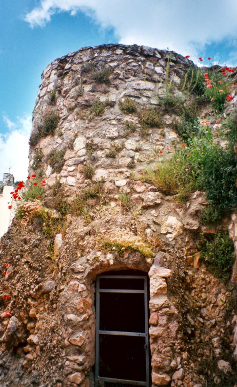 Este recinto protegía a esta torre de planta circular con funciones de vigía, construida con sillares y situada en uno de los ángulos, de la que en la actualidad sólo permanece en pie una mitad vertical con pequeñas ventanas.