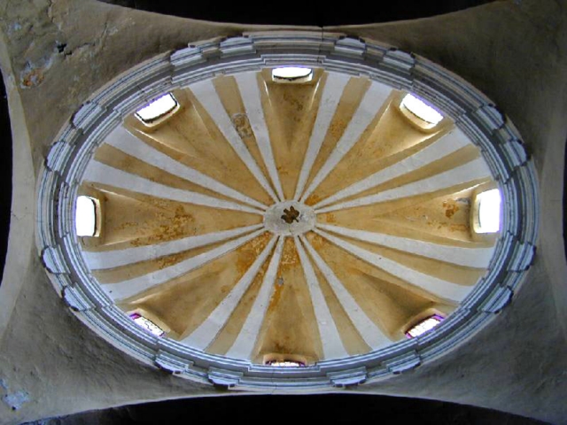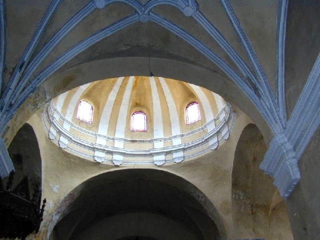 La cabecera está cubierta con bóveda de lunetos, así como los brazos del crucero. El crucero propiamente dicho lo está con una gran cúpula gallonada sobre pechinas.