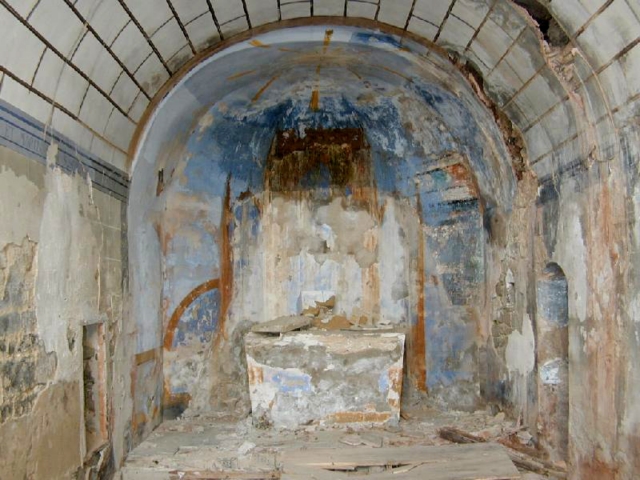 La iglesia propiamente dicha es una construcción sencilla, con una nave y cabecera poligonal al interior (recta al exterior) orientada al este.