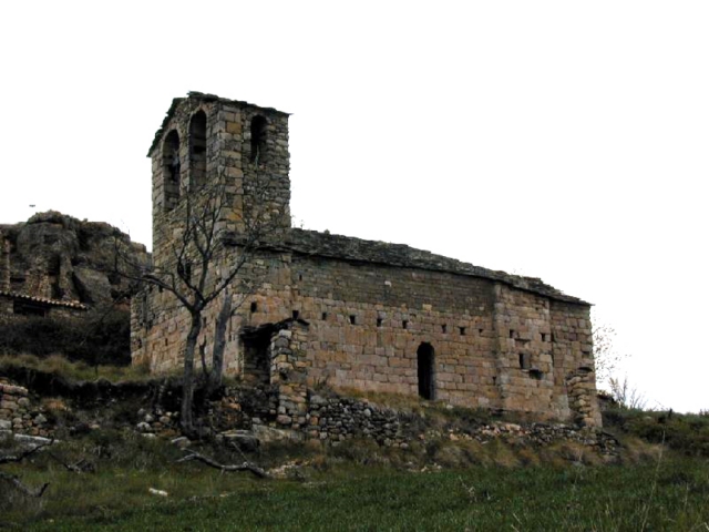 A pesar del empeño de los autores que la han estudiado por justificar su filiación románica (hay documentada en el lugar una iglesia desde finales del siglo XI, pero probablemente se trata de un edificio desaparecido que sería sustituido por el actual), el edificio parece una obra unitaria realizada en el siglo XVI o principios del siguiente, al menos en lo que se refiere a la nave y capillas, que muestran al exterior idénticos paramentos de sillares. La gran espadaña de dos ojos de medio punto situada en el hastial de los pies pudo hacerse en fecha ligeramente posterior, ya que su aparejo es de mampostería y presenta una inscripción con la fecha de 1527. Más tarde esta espadaña se convirtió en una torre cuadrangular de aparejo aún más tosco, que coincide con el de la parte superior del muro sur (fruto quizá de unas obras de reparación). Esta última reforma puede corresponder a la fecha de 1827, que aparece en el arco triunfal de acceso al ábside por el interior.
