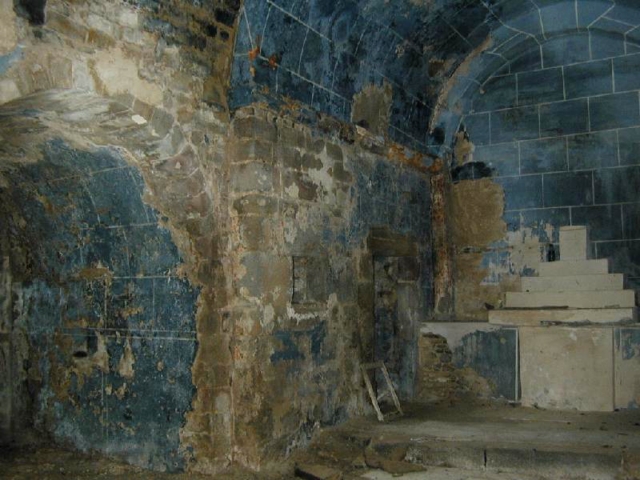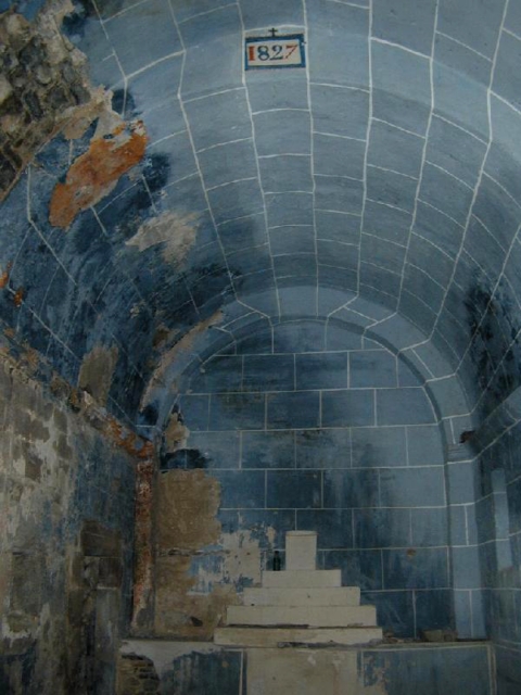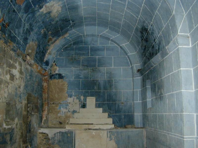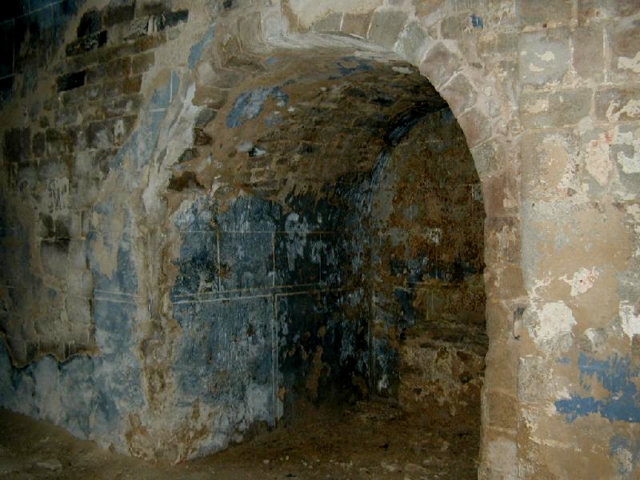 Todo el interior de la iglesia estaba pintado con gris y blanco, imitando sillares, según es característico del siglo XVI.
