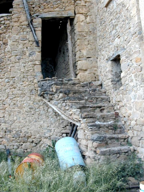 El pajar es una sencilla construcción de planta rectangular, con puerta en alto a la que se accede a través de una escalera de mampostería que asciende adosada a la fachada del segundo bloque de vivienda.