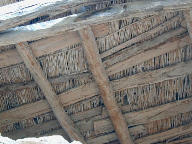 Las cubiertas son a dos aguas forjadas con pares sobre los que apoyan tablas de corte irregular y teja árabe asentada sobre barro. En la cubierta del pajar hay una mezcla desordenada de pares, ventreras y alguna tabla, sobre las que se disponen cañas en ristra donde la teja árabe descansa sin haber utilizado nigún tipo de argamasa.