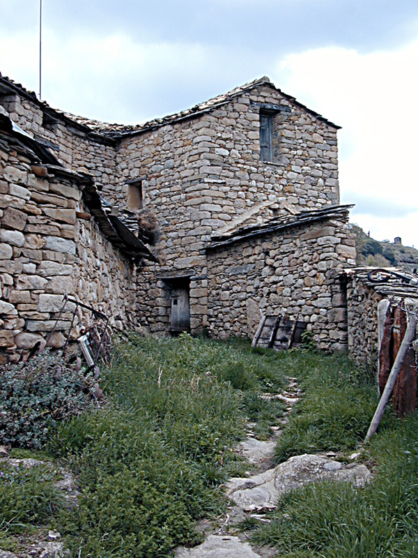 Además de la casa propiamente dicha, prolongada por su frente mediante un patio descubierto cerrado por un muro, el conjunto está compuesto por un cuerpo añadido que forma un paso cubierto sobre el camino y sirve para dar acceso desde el interior de la casa al piso superior de una borda, dispuesta transversalmente a las construcciones anteriores y ligeramente en diagonal, ya que sigue el trazado del camino. El frente sur de la borda se prolonga mediante los muros de delimitación del camino.