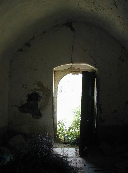 Los únicos huecos al exterior son una pequeña ventana abocinada en su pared meridional y la puerta de acceso. Esta se encuentra en la fachada de los pies y es un vano en arco de medio punto con grandes dovelas.
