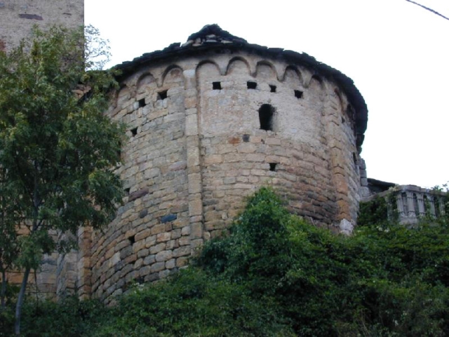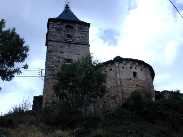 Se encuentra situada en una zona de fuerte pendiente, por lo que la cabecera ha debido prolongar sus muros por debajo del nivel del resto de la iglesia. Hasta ahora no hay ninguna evidencia que el espacio resultante haya servido para albergar una cripta, suponiéndose que la única misión del muro es salvar el desnivel.