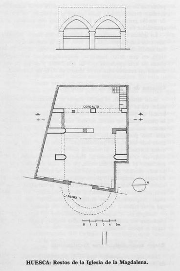 De los restos se puede intuir una planta de nave única dividida en tres tramos separados por columnas semiempotradas coronadas por equino y cimacio. Según rezan testimonios del siglo XIX podría estar cubierta mediante artesonado. Se abrían tres capillas en el lado de la epístola, de las cuales dos se encontraban intercomunicadas mediante arco de medio punto. La cabecera cerraba en ábside semicircular.