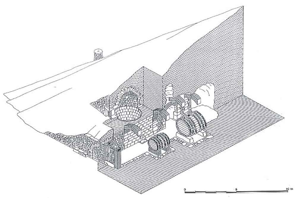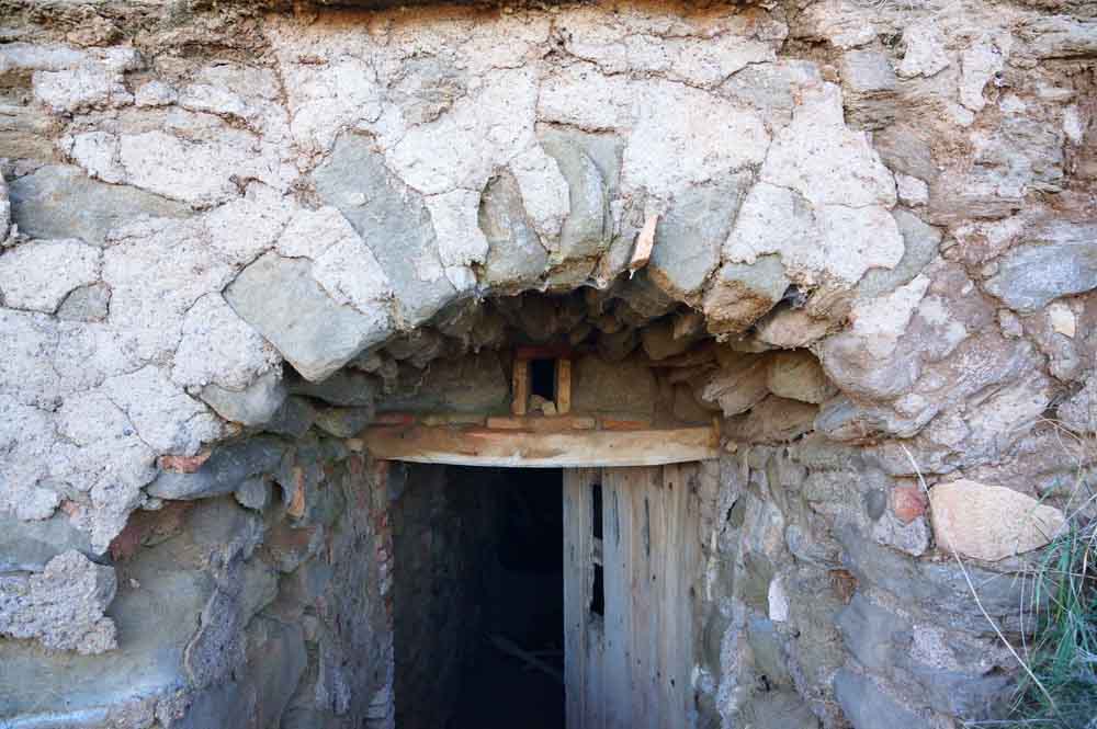 En él se abría el vano de acceso, en arco rebajado, que da paso a un corto tramo cubierto con bóveda de cañón rebajado. Al fondo de esta se abre una puerta adintelada, con un pequeño hueco de ventilación sobre ella.