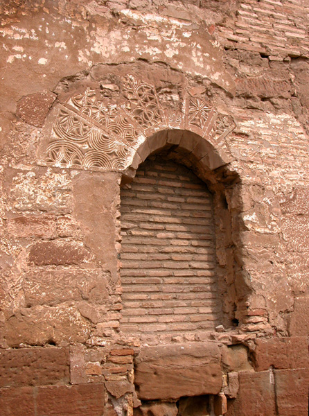 Por su parte, la ventana oriental presenta al exterior un estado de conservación muy precario, dado que apenas mantiene elementos de su fábrica original. Como la anterior pudo tener dovelas decoradas con relieves, de los que nada queda en la actualidad. Tan sólo podemos observar hoy día restos de las columnas adosadas de las jambas, de las que destaca un capitel con decoración vegetal en el lado Este y algunos vestigios de los fustes esculpidos en los sillares. También en este caso subsisten en el intradós marcas en las dovelas que indican que éste estuvo decorado, bien con festones o bien con lóbulos.