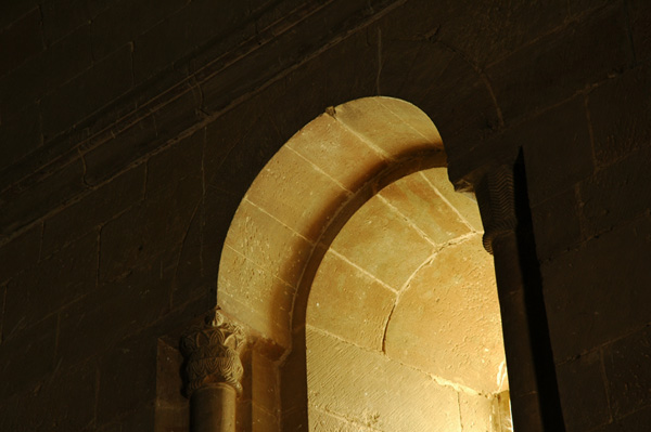 En la portada de acceso, al interior, se colocaron dos ménsulas en piedra trabajada decoradas con modillones de rollo y con dos figuras zoomorfas esculpidas en su centro, una de las cuales parece estar representando a un cáprido y la otra a un cánido, quizá un lobo.