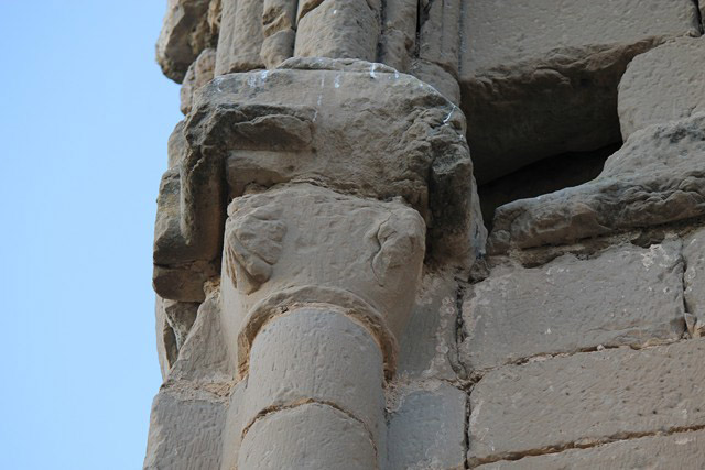 En los sillares del edificio aparecen abundantes marcas de cantero, similares a las de la antigua iglesia de San Salvador de Pallaruelo de Monegros, construida por Arnaldo Vidal de Almenar.