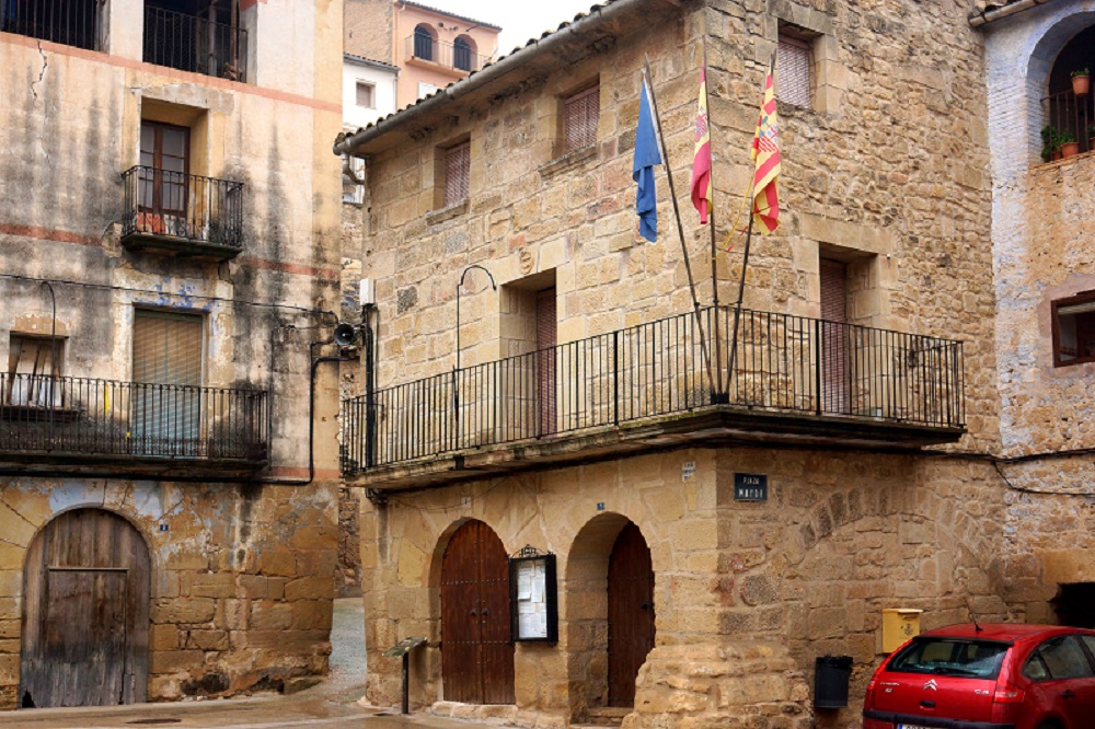 El edificio del ayuntamiento es una construcción de obra de mampostería para interiores y sillares de tamaños heterogéneos para el exterior, de dos plantas de altura más espacio bajo cubierta.