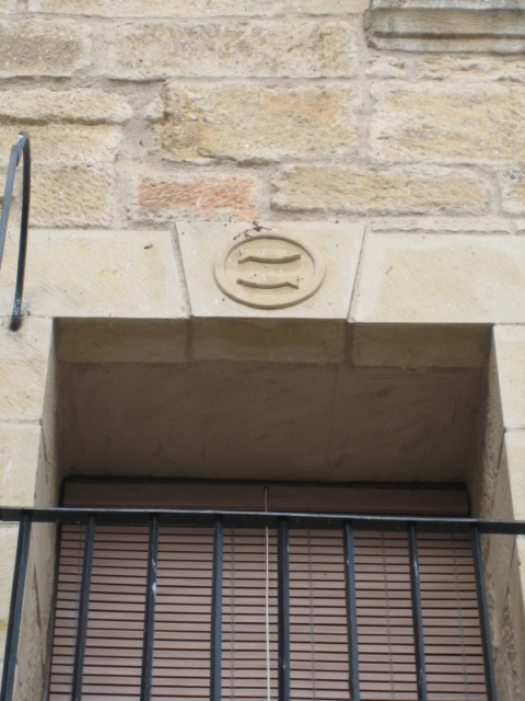 En la planta principal se dispone un balcón corrido, con un vano adintelado totalmente rehecho, en cuya parte central se encuentra el escudo de la villa, dos peces superpuestos que miran en distintas direcciones enmarcados por un tondo.
