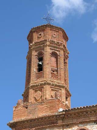 Se trata de una torre de cuatro cuerpos, el primero cuadrangular de mampostería y sillería en las esquinas y coincide con el cuerpo de la iglesia, siendo los superiores de ladrillo y octogonales. Entre estos hay una prolongación de ladrillo para pasar del cuadrado al octógono, que se remata con pequeños pináculos. El segundo cuerpo presenta casetones rehundidos sobre los que se ubica una decoración de rombo en resalte. Tras este se ubica una banda de ladrillo aplantillado que lo separa del tercer cuerpo, con vanos de medio punto que en su parte inferior reciben una decoración de ladrillo en esquinillas. Sobre este se sitúan dos bandas de ladrillo aplantillado entre las que hay un friso discontinuo en las esquinas de ladrillo al tresbolillo. Se remata el conjunto con óculos entre casetones sobre los que se ubica el tejado, a ocho aguas.