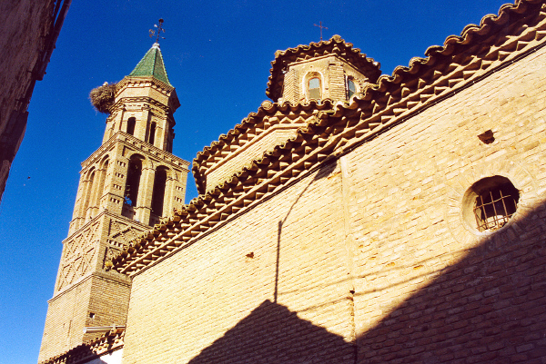 La torre mudéjar de Mediana de Aragón, de planta cuadrada, presenta estructura de alminar, a modo de machón prismático hasta el quinto piso, siendo a partir del sexto cilíndrico, en torno al cual ascienden las escaleras.