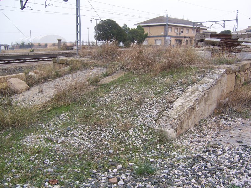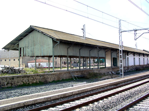 Existe junto a la vía, un muelle con un porche cubierto a dos aguas, sobre estructura de cerchas de madera, sostenido por pilares, para la carga y descarga de mercancías.